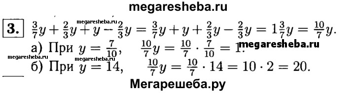 3. Упростите выражение: 3/7у + 2/3 у + y – 2/3y и найдите его значение при: а) у = 7/10; б) у = 14.