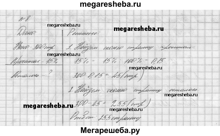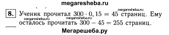8. Ученик прочитал 15% всей книги, в которой 300 страниц. Сколько страниц осталось прочитать ученику?