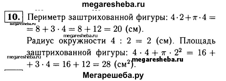 10. Найдите периметр и площадь заштрихованной фигуры, изображенной на рисунке 25, если сторона квадрата ABCD равна 4 см. Примите п = 3.