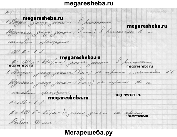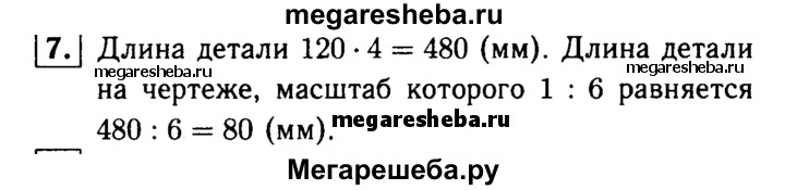 7. Деталь на чертеже, выполненном в масштабе 1:4, имеет длину 120 мм. Какую длину будет иметь эта деталь на чертеже, масштаб которого 1:6?