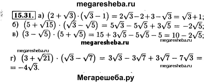 Подробный решебник (ГДЗ) по Алгебре за 8 (восьмой) класс Учебник, Задачник - готовый ответ §15 - 15.31. Авторы учебника: Мордкович, Александрова, Тульчинская, Мишустина, Базовый уровень. Издательство: Мнемозина 2015-2019.