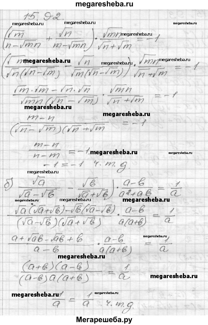 ГДЗ по алгебре 8 класс Мордкович Учебник, Задачник Базовый уровень §15 - 15.92