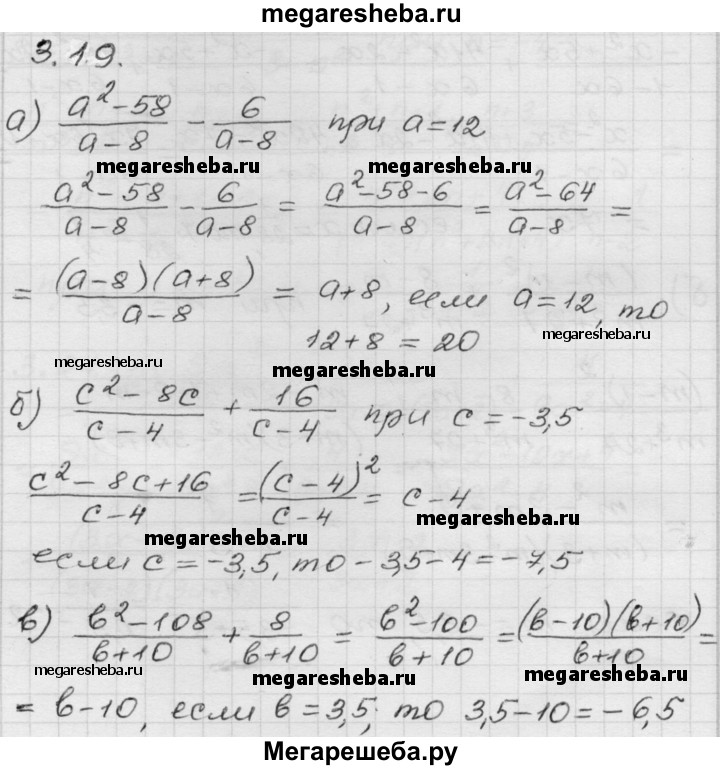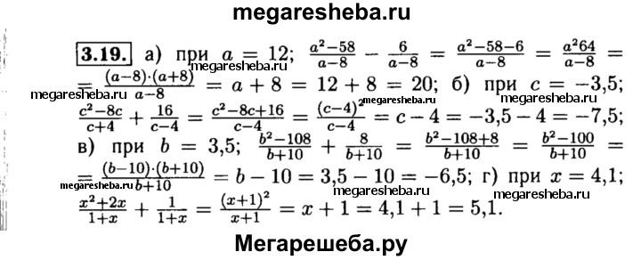 Подробный решебник (ГДЗ) по Алгебре за 8 (восьмой) класс Учебник, Задачник - готовый ответ §3 - 3.19. Авторы учебника: Мордкович, Александрова, Тульчинская, Мишустина, Базовый уровень. Издательство: Мнемозина 2015-2019.