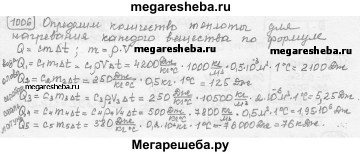 Подробный решебник (ГДЗ) по Физике за 7‐9 (седьмой‐девятый) класс сборник задач - готовый ответ номер - 1006. Авторы учебника: Лукашик, Иванова. Издательство: Просвещение 2016.