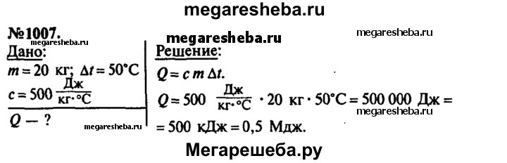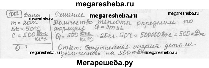 Подробный решебник (ГДЗ) по Физике за 7‐9 (седьмой‐девятый) класс сборник задач - готовый ответ номер - 1007. Авторы учебника: Лукашик, Иванова. Издательство: Просвещение 2016.