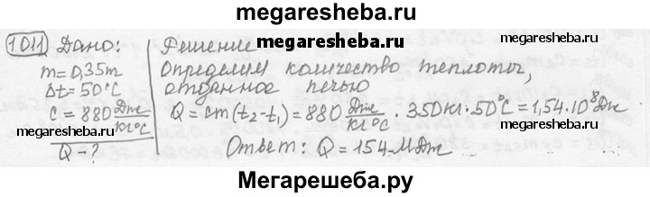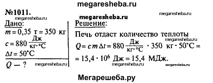 1011. Какое количество теплоты отдаст кирпичная печь массой 0,35 т, если при ее остывании температура изменилась на 50 °С?