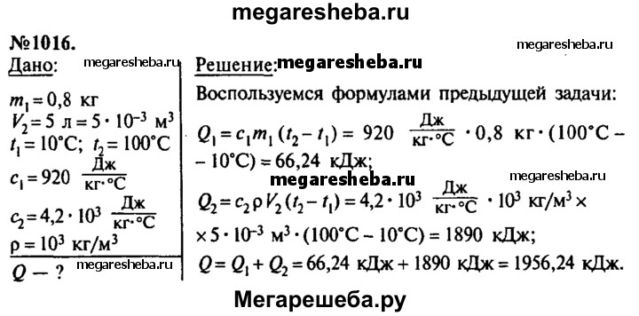 Подробный решебник (ГДЗ) по Физике за 7‐9 (седьмой‐девятый) класс сборник задач - готовый ответ номер - 1016. Авторы учебника: Лукашик, Иванова. Издательство: Просвещение 2016.