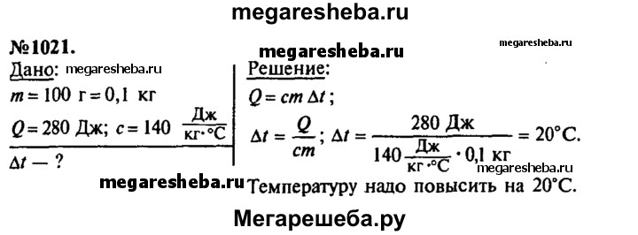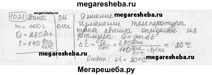 Подробный решебник (ГДЗ) по Физике за 7‐9 (седьмой‐девятый) класс сборник задач - готовый ответ номер - 1021. Авторы учебника: Лукашик, Иванова. Издательство: Просвещение 2016.