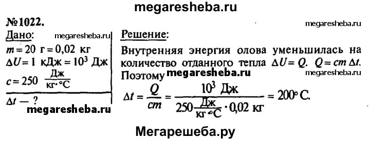 Подробный решебник (ГДЗ) по Физике за 7‐9 (седьмой‐девятый) класс сборник задач - готовый ответ номер - 1022. Авторы учебника: Лукашик, Иванова. Издательство: Просвещение 2016.