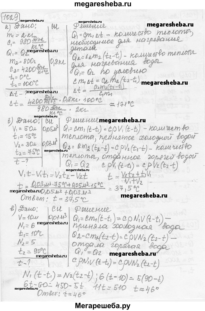 Подробный решебник (ГДЗ) по Физике за 7‐9 (седьмой‐девятый) класс сборник задач - готовый ответ номер - 1029. Авторы учебника: Лукашик, Иванова. Издательство: Просвещение 2016.