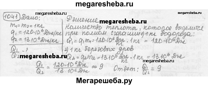 1041. Во сколько раз больше выделится теплоты при полном сгорании водорода массой 1 кг, чем при полном сгорании сухих березовых дров той же массы?