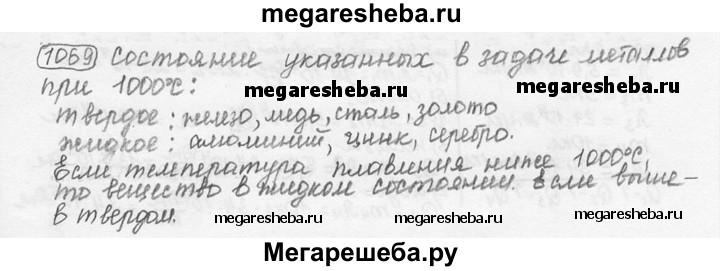 1069. При постановке эксперимента отдельно нагревали до 1000 °С алюминий, железо, медь, цинк, сталь, серебро и золото. В каком состоянии — жидком или твердом — находились эти металлы при указанной температуре?