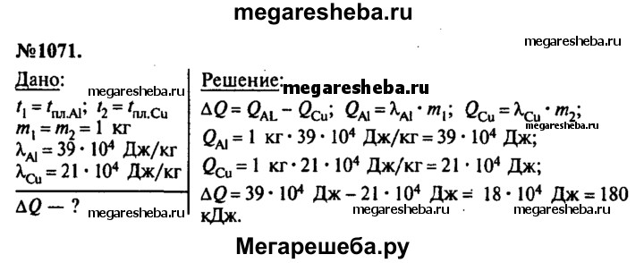 Подробный решебник (ГДЗ) по Физике за 7‐9 (седьмой‐девятый) класс сборник задач - готовый ответ номер - 1071. Авторы учебника: Лукашик, Иванова. Издательство: Просвещение 2016.