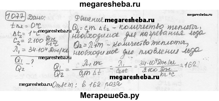 Подробный решебник (ГДЗ) по Физике за 7‐9 (седьмой‐девятый) класс сборник задач - готовый ответ номер - 1077. Авторы учебника: Лукашик, Иванова. Издательство: Просвещение 2016.