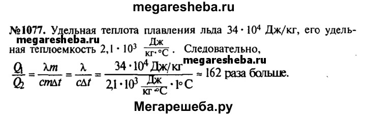 1077. Во сколько раз требуется больше энергии для плавления льда при температуре 0 °С, чем для изменения температуры той же массы льда на 1 °С?