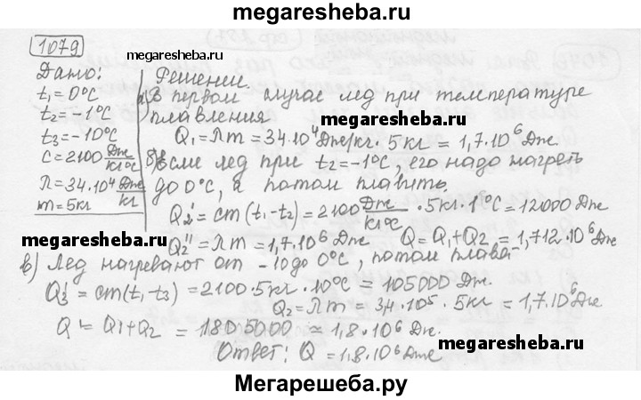 Подробный решебник (ГДЗ) по Физике за 7‐9 (седьмой‐девятый) класс сборник задач - готовый ответ номер - 1079. Авторы учебника: Лукашик, Иванова. Издательство: Просвещение 2016.