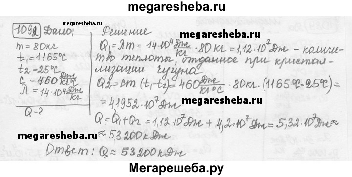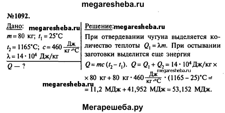 Подробный решебник (ГДЗ) по Физике за 7‐9 (седьмой‐девятый) класс сборник задач - готовый ответ номер - 1092. Авторы учебника: Лукашик, Иванова. Издательство: Просвещение 2016.