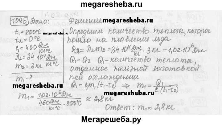 Подробный решебник (ГДЗ) по Физике за 7‐9 (седьмой‐девятый) класс сборник задач - готовый ответ номер - 1095. Авторы учебника: Лукашик, Иванова. Издательство: Просвещение 2016.