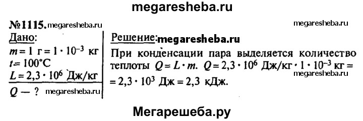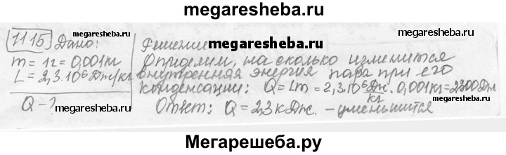 1115. Как и на сколько изменится внутренняя энергия водяного пара массой 1 г при его конденсации, если он имеет температуру 100 °С?