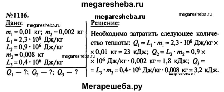 Подробный решебник (ГДЗ) по Физике за 7‐9 (седьмой‐девятый) класс сборник задач - готовый ответ номер - 1116. Авторы учебника: Лукашик, Иванова. Издательство: Просвещение 2016.