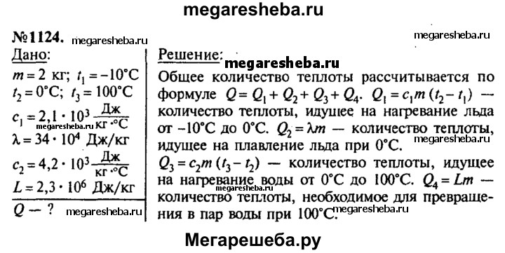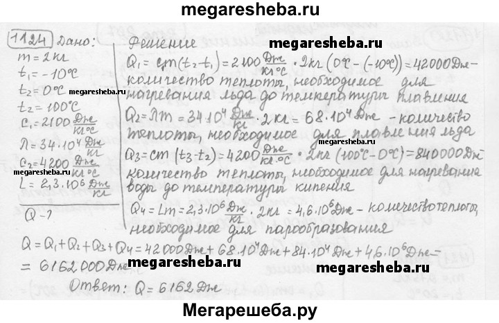 1124. Какое количество теплоты необходимо, чтобы из льда массой 2 кг, взятого при температуре -10 °С, получить пар при 100 °С?