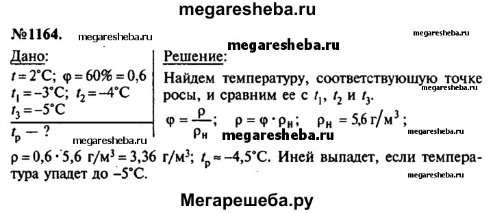 1164. Вечером при температуре воздуха 2 °С относительная влажность равна 60%. Выпадет ли ночью иней, если температура воздуха снизится до -3 °С; до -4 °С; до -5 °С?
