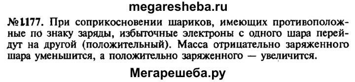 1177. Один шар заряжен положительным зарядом, другой — отрицательным. Как изменится масса шаров после их соприкосновения? Почему?