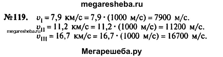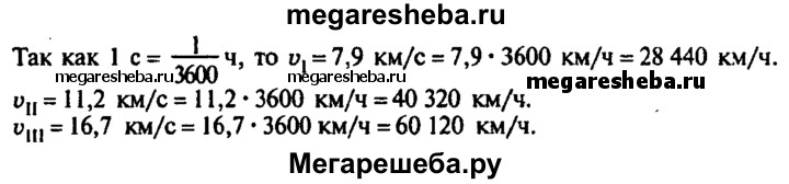 119. Известно, что первая, вторая и третья космические скорости1 соответственно равны 7,9 км/с, 11,2 км/с, 16,7 км/с. Выразите эти скорости в метрах в секунду (м/с) и в километрах в час (км/ч).