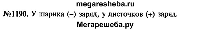 1190. Укажите знаки электрического заряда у шарика и листочков электроскопа, к которому поднесли (не касаясь шарика) положительно заряженную палочку. (До опыта электроскоп заряжен не был.)