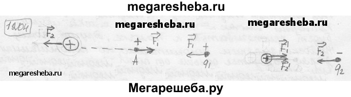 1204. Укажите направление сил, действующих со стороны электрических полей, заряженных шаров и полей, внесенных в них зарядов (см. рис. 285 и 286).