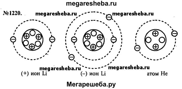 1220. Известно, что литий имеет три электрона. С учетом этого начертите схемы положительного и отрицательного ионов лития; гелия (имеющего два электрона).
