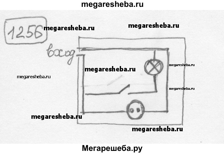 1256. На рисунке 304 изображена схема расположения приборов на стене. Сделайте рисунок в тетради и начертите схему соединения приборов (розетка всегда должна быть под напряжением).