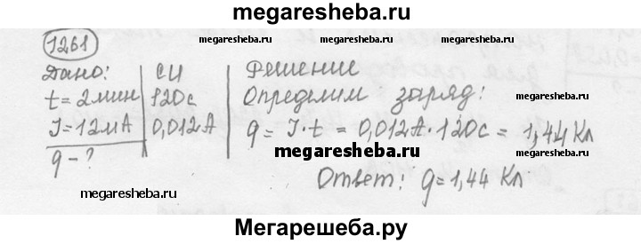 Подробный решебник (ГДЗ) по Физике за 7‐9 (седьмой‐девятый) класс сборник задач - готовый ответ номер - 1261. Авторы учебника: Лукашик, Иванова. Издательство: Просвещение 2016.