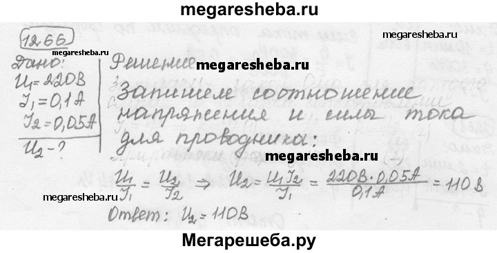 Подробный решебник (ГДЗ) по Физике за 7‐9 (седьмой‐девятый) класс сборник задач - готовый ответ номер - 1266. Авторы учебника: Лукашик, Иванова. Издательство: Просвещение 2016.