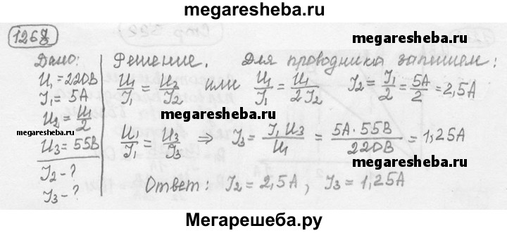 1268. При напряжении 220 В сила тока в резисторе равна 5 А. Какая сила тока будет в резисторе, если напряжение, поданное на него, уменьшить в 2 раза; уменьшить до 55 В?