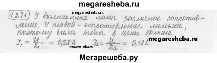 1271. Батарея от карманного фонаря, амперметр и рубильник соединены последовательно. В эту цепь мальчик поочередно включал лампы, на цоколях которых написано 3,5 В. Показания амперметра при этом были для одной лампы 0,28 А, а для другой 0,18 А. В чем причина различия показаний амперметра? (Считать напряжение на клеммах источника тока постоянным.)