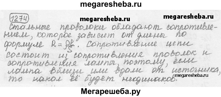 Подробный решебник (ГДЗ) по Физике за 7‐9 (седьмой‐девятый) класс сборник задач - готовый ответ номер - 1274. Авторы учебника: Лукашик, Иванова. Издательство: Просвещение 2016.