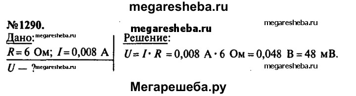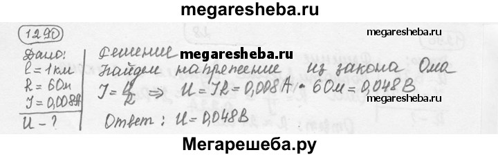 1290. Определите напряжение на участке телеграфной линии длиной 1 км, если сопротивление этого участка 6 Ом, а сила тока, питающего цепь, 0,008 А.
