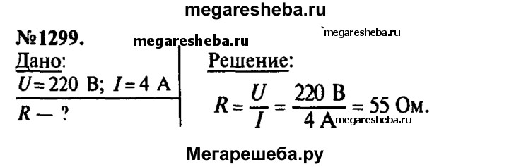 1299. Сила тока в спирали электрического кипятильника 4 А. Определите сопротивление спирали, если напряжение на клеммах кипятильника 220 В.