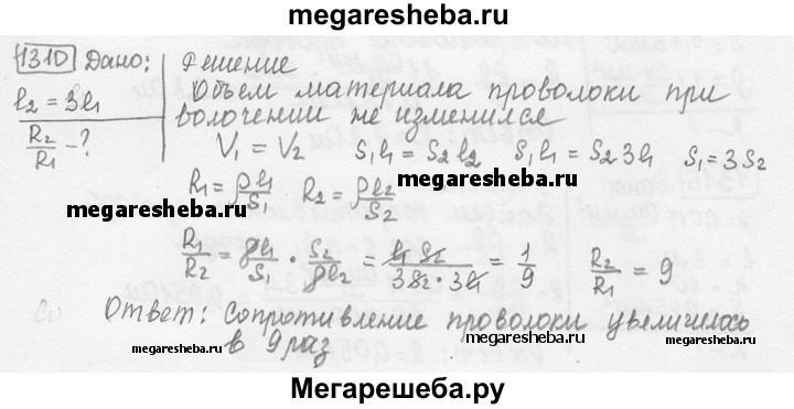 1310. После протягивания проволоки через волочильный станок длина ее увеличилась в 3 раза. Как изменилось сопротивление этой проволоки?