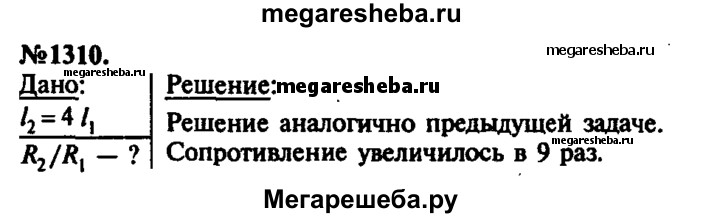 Подробный решебник (ГДЗ) по Физике за 7‐9 (седьмой‐девятый) класс сборник задач - готовый ответ номер - 1310. Авторы учебника: Лукашик, Иванова. Издательство: Просвещение 2016.