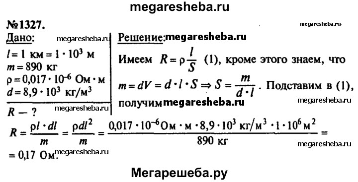 Подробный решебник (ГДЗ) по Физике за 7‐9 (седьмой‐девятый) класс сборник задач - готовый ответ номер - 1327. Авторы учебника: Лукашик, Иванова. Издательство: Просвещение 2016.