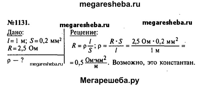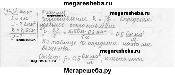 1331. Измерения показали, что проводник длиной 1 м и площадью поперечного сечения 0,2 мм2 имеет сопротивление 2,5 Ом. Каково название сплава металлов, из которого изготовлен проводник?