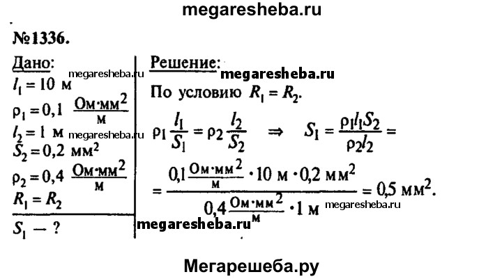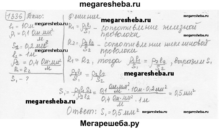 1336. Какой площади поперечного сечения нужно взять железную проволоку длиной 10 м, чтобы ее сопротивление было такое же, как у никелиновой проволоки площадью поперечного сечения 0,2 мм2 и длиной 1 м?