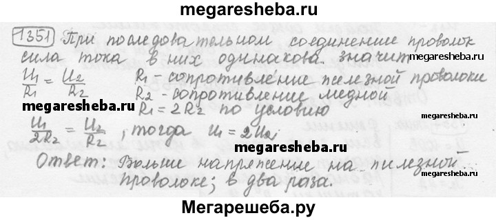 Подробный решебник (ГДЗ) по Физике за 7‐9 (седьмой‐девятый) класс сборник задач - готовый ответ номер - 1351. Авторы учебника: Лукашик, Иванова. Издательство: Просвещение 2016.
