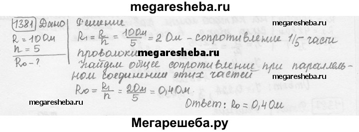 Подробный решебник (ГДЗ) по Физике за 7‐9 (седьмой‐девятый) класс сборник задач - готовый ответ номер - 1381. Авторы учебника: Лукашик, Иванова. Издательство: Просвещение 2016.
