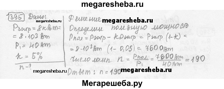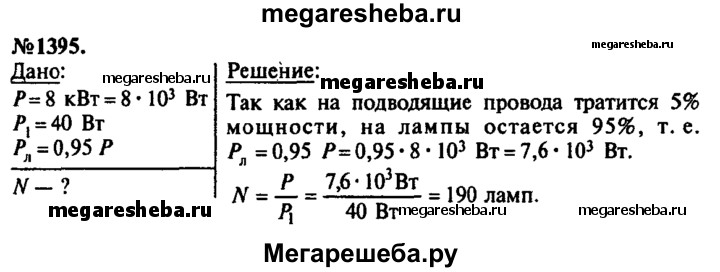 1395. В горном ауле установлен ветряной двигатель, приводящий в действие электрогенератор мощностью 8 кВт. Сколько лампочек мощностью 40 Вт можно питать от этого источника тока, если 5% мощности расходуется в подводящих проводах?