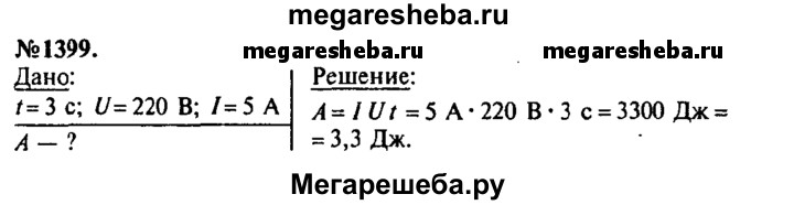 1399. При изготовлении фотографического снимка ученица включила электрическую лампу рис 346 на 3 с в сеть напряжением 220 В. Сколько энергии израсходовано при этом, если сила тока в лампе равна 5 А?