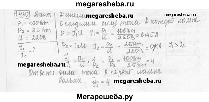 Подробный решебник (ГДЗ) по Физике за 7‐9 (седьмой‐девятый) класс сборник задач - готовый ответ номер - 1410. Авторы учебника: Лукашик, Иванова. Издательство: Просвещение 2016.