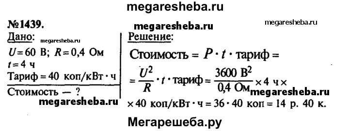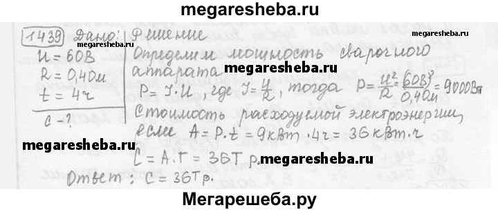 Подробный решебник (ГДЗ) по Физике за 7‐9 (седьмой‐девятый) класс сборник задач - готовый ответ номер - 1439. Авторы учебника: Лукашик, Иванова. Издательство: Просвещение 2016.